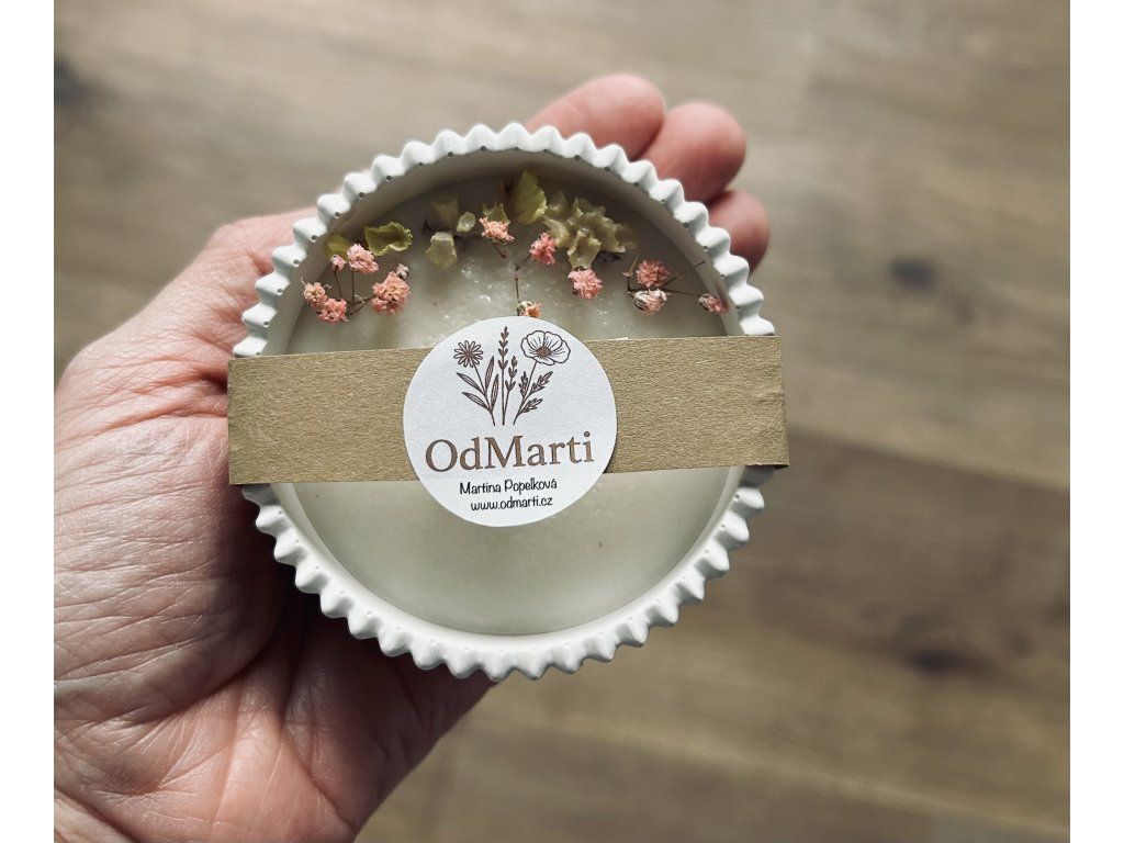 Těšíte se na jaro jako my? Tato ručně vyrobená svíčka, vylévaná v misce z kvalitního keraflottu Vám dodá pocit, že je jaro za dveřmi. Něžný design a barvy přinesou do Vašeho domova příjemnou atmosféru a pestrost i do deštivých dnů.