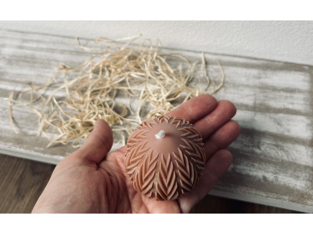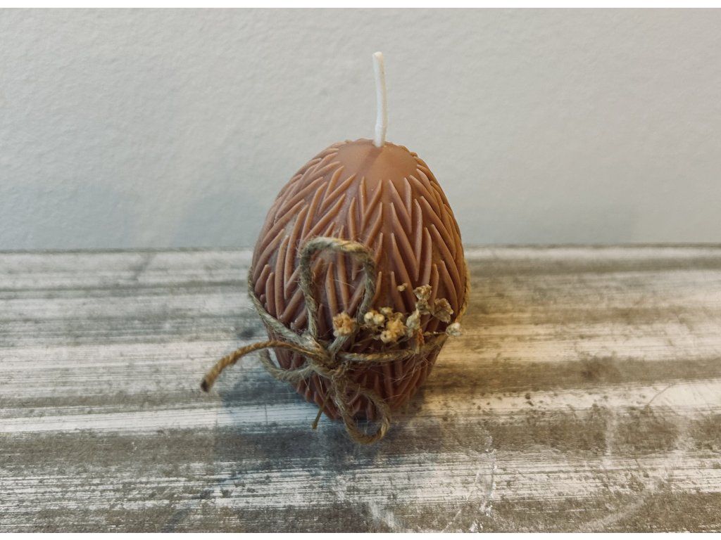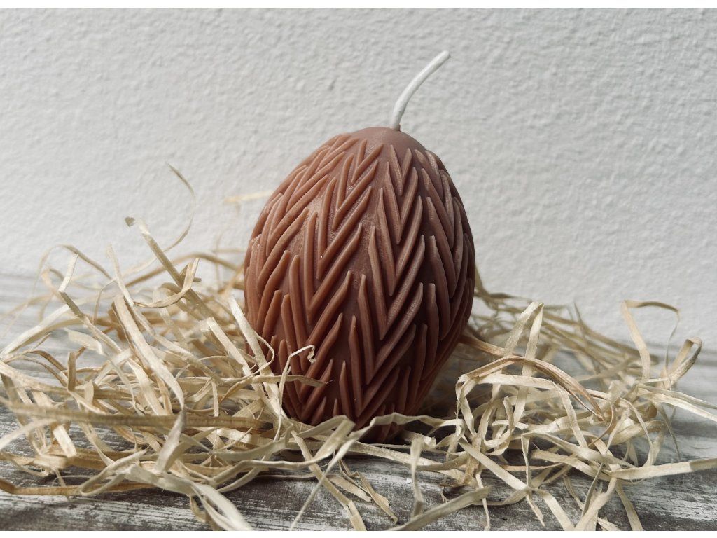 Svíčka je vyrobena z kvalitního sójového vosku. Elegantní tvar vajíčka zaujme na první pohled svým vzorem. Teplý hnědý odstín dodává svíčce klidný a zemitý charakter a snadno zapadne do minimalistického a rustikálního interiéru.